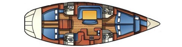 GLI INTERNI della barca sono confortevoli ed eleganti: ha quattro cabine per gli ospiti, ciascuna con bagno privato, e una a prua per l’equipaggio. Le cabine sono cosÏ suddivise: due a poppa con letti matrimoniali e due cabine di prua, ognuna con un letto singolo e uno matrimoniale convertibile in singolo. Un ampia cucina con due frigoriferi, e una spaziosa dinette con divano che ospita comodamente dieci persone. Libri di bordo e musica sono a disposizione degli ospiti.